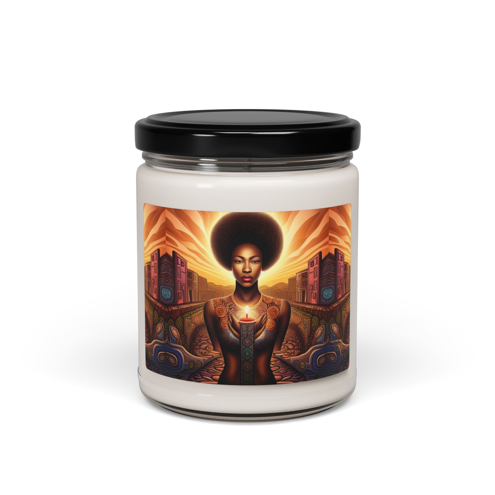 Original Artwork represented by each name. Packed with immersive aromas, these scented candles come in 9oz glass jars and are one size (2.8″ × 3.5") (7.1cm × 8.8cm). Made with 100% natural soy wax blend, and each candle features a 100% cotton wick.