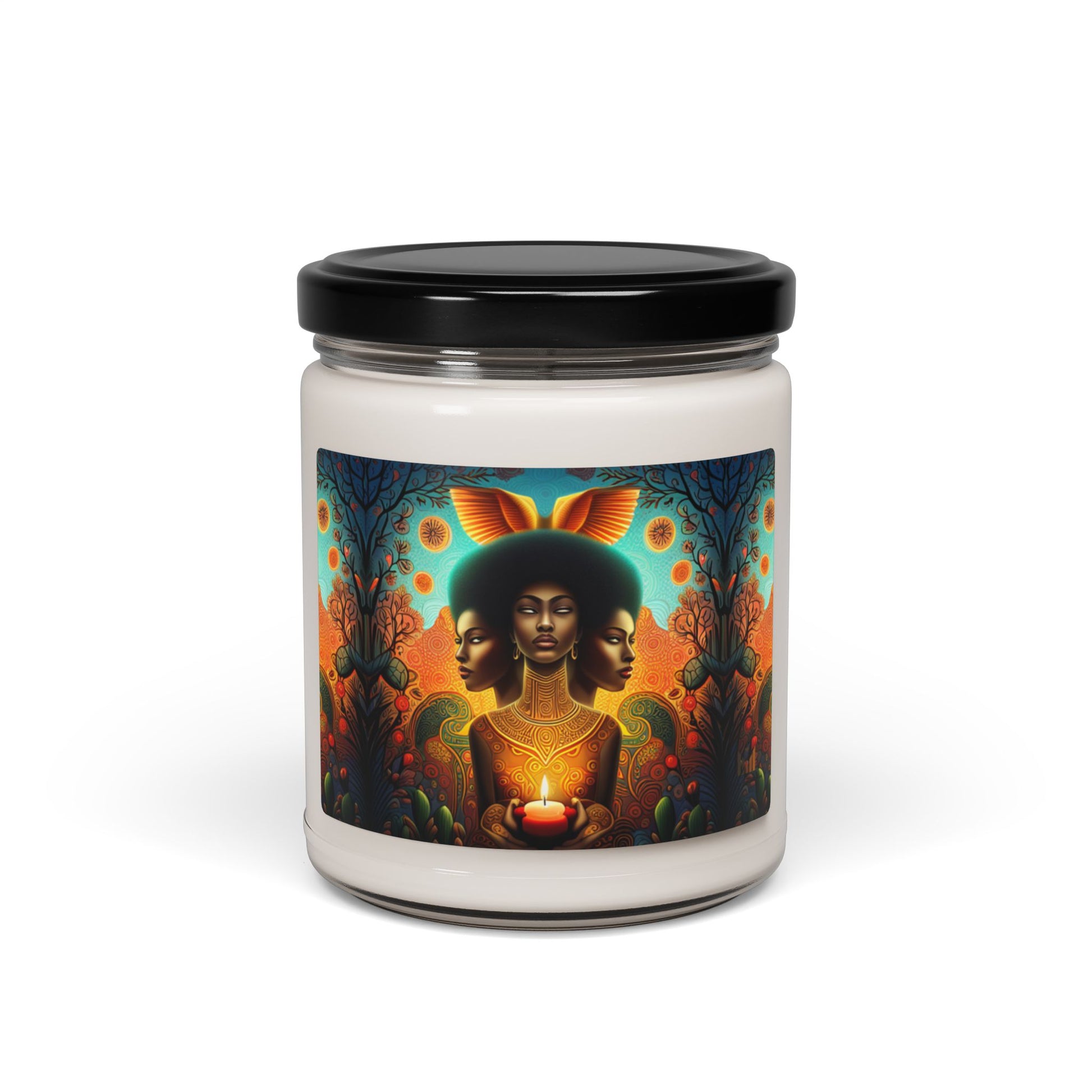 Original Artwork represented by each name. Packed with immersive aromas, these scented candles come in 9oz glass jars and are one size (2.8″ × 3.5") (7.1cm × 8.8cm). Made with 100% natural soy wax blend, and each candle features a 100% cotton wick.